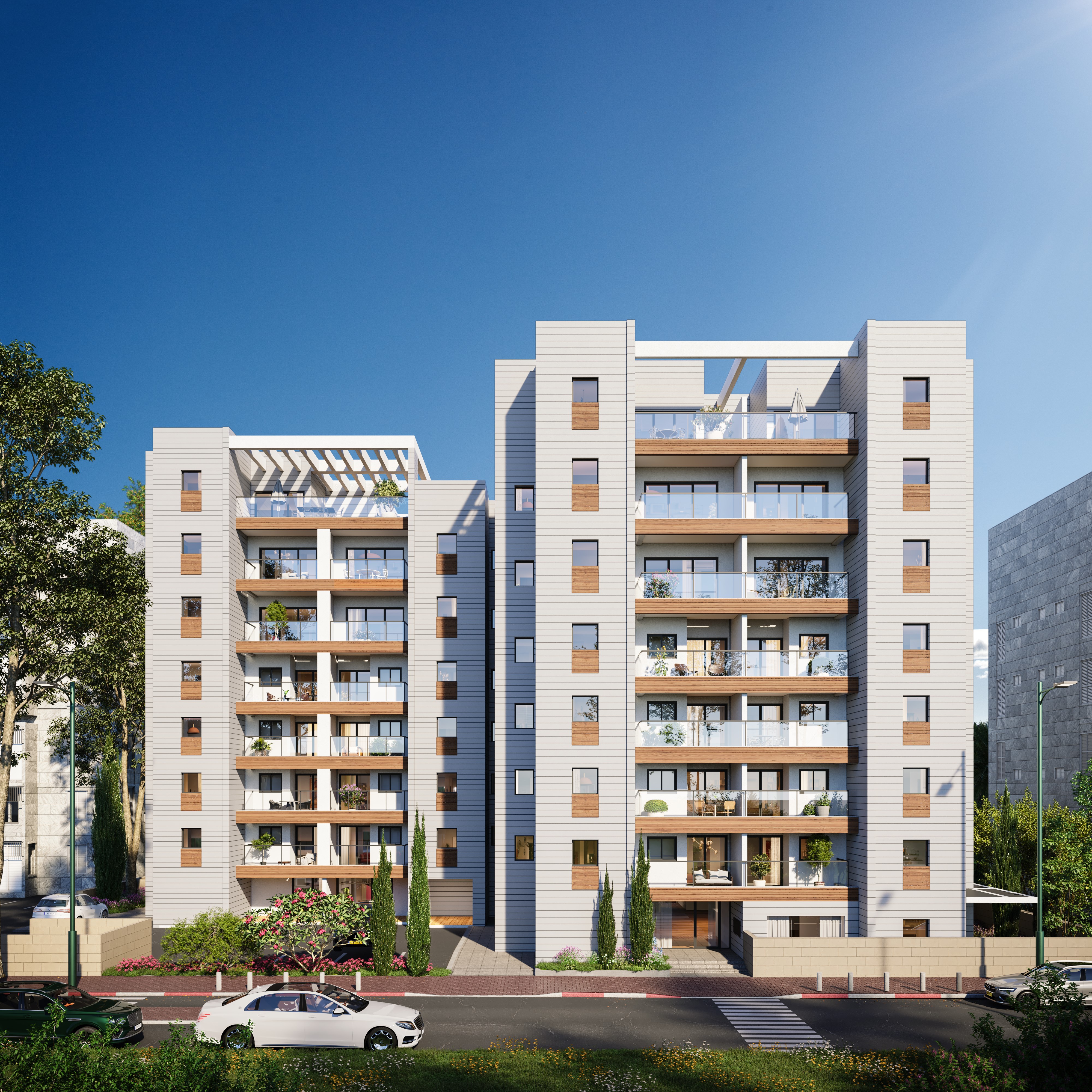 הבניין מציג עיצוב מודרני ונקי עם חזית בהירה, קווים אלגנטיים ושילוב אלמנטים של עץ להוספת חמימות. חלונות גדולים ומרפסות רחבות מעניקים אור טבעי ונוף פתוח, לצד חוויית מגורים נוחה ויוקרתית. סביבת הבניין מטופחת וירוקה, ומשלימה את תחושת האיכות הכוללת.